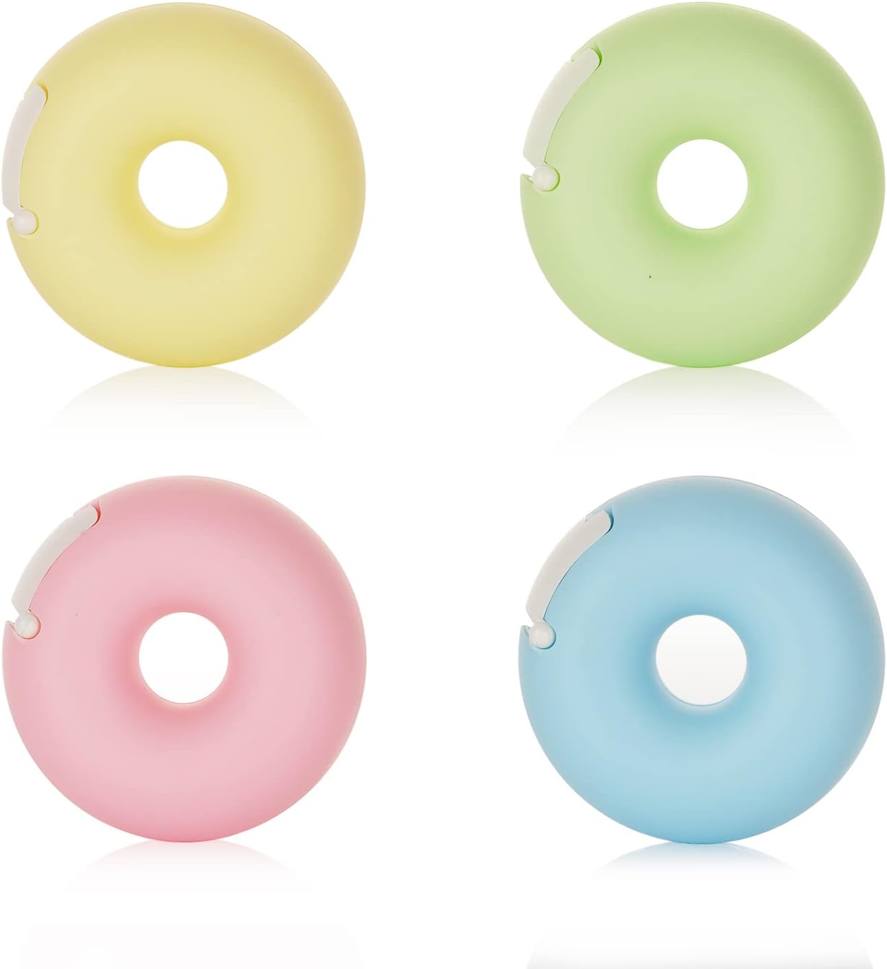 Details: The tape diapense has cute shape, used the jagged blade had torn the tape, the cutting power was felt heavily. It is the preferred tape for offices, home and school. Specification: Color: Candy Material: Plastic Donut Size: 2.76x2.76 inch/7x7cm Heart Size: 3.46x3.15 inch/8.8x8cm Package Included: 4 x Donut Tape Dispenser